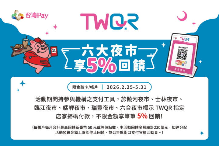 艋舺夜市超給利 台灣Pay單筆享20%現金回饋